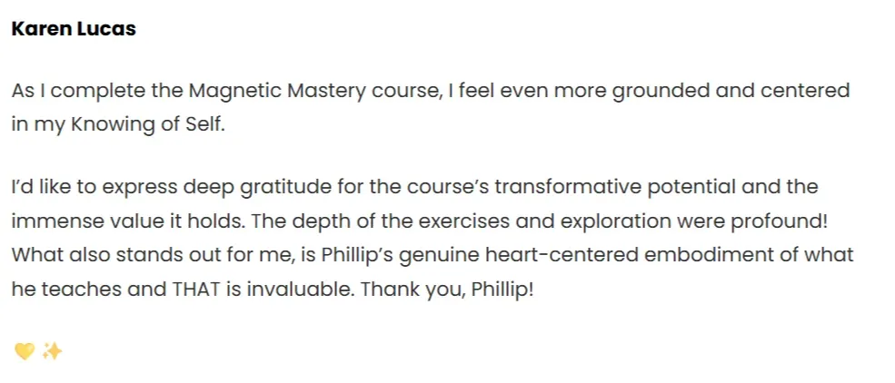 Magnetic Mastery is a life-altering 28-day challenge designed to unlock your full potential and create the life you've always dreamed of. This isn’t just another program—it's a transformative experience that merges ancient wisdom with modern practices, empowering you to manifest abundance, love, and opportunities effortlessly.